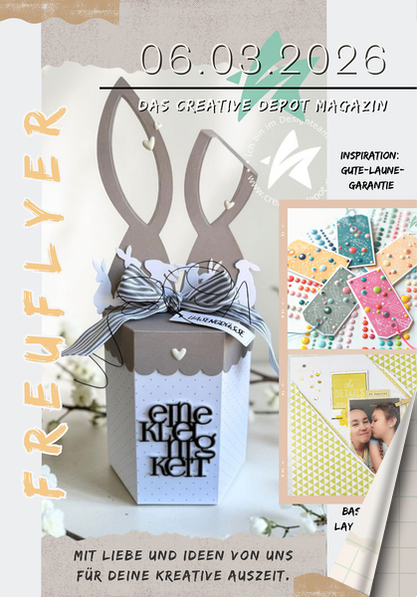 06.03.2026FREUFLYERREYLFUERFDa s Crea tiv e Depo t Ma ga zinMit Liebe u n d Ideen v o n u n sfü r dein e krea tiv e A u s Zeit.Inspiration:Gute-LauneGarantieBasteltipp:LayoutliebeLift it!